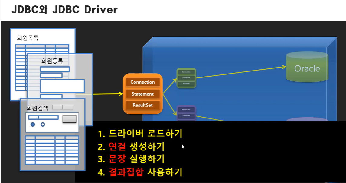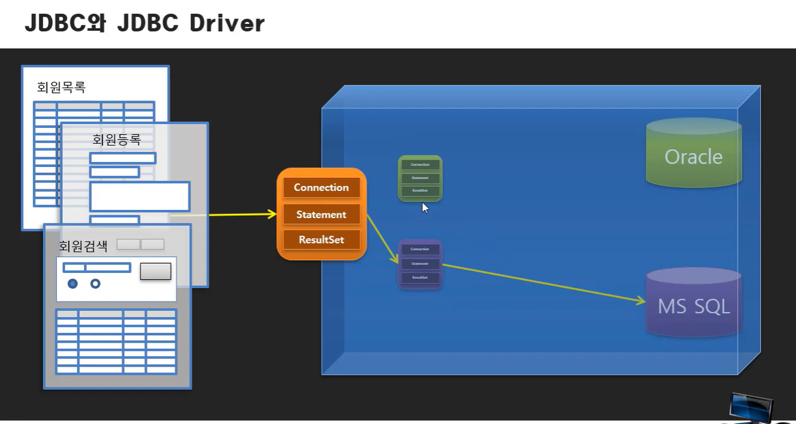 그러기 위해선 -> JDBC가 필요하고, 각 회사의 JDBC Driver가 필요하다.