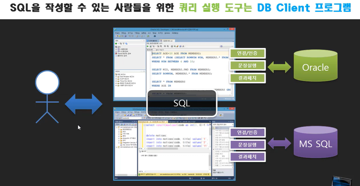 SQL으로 변환이 되고 사용자가 원하는 정보를 가져온다.