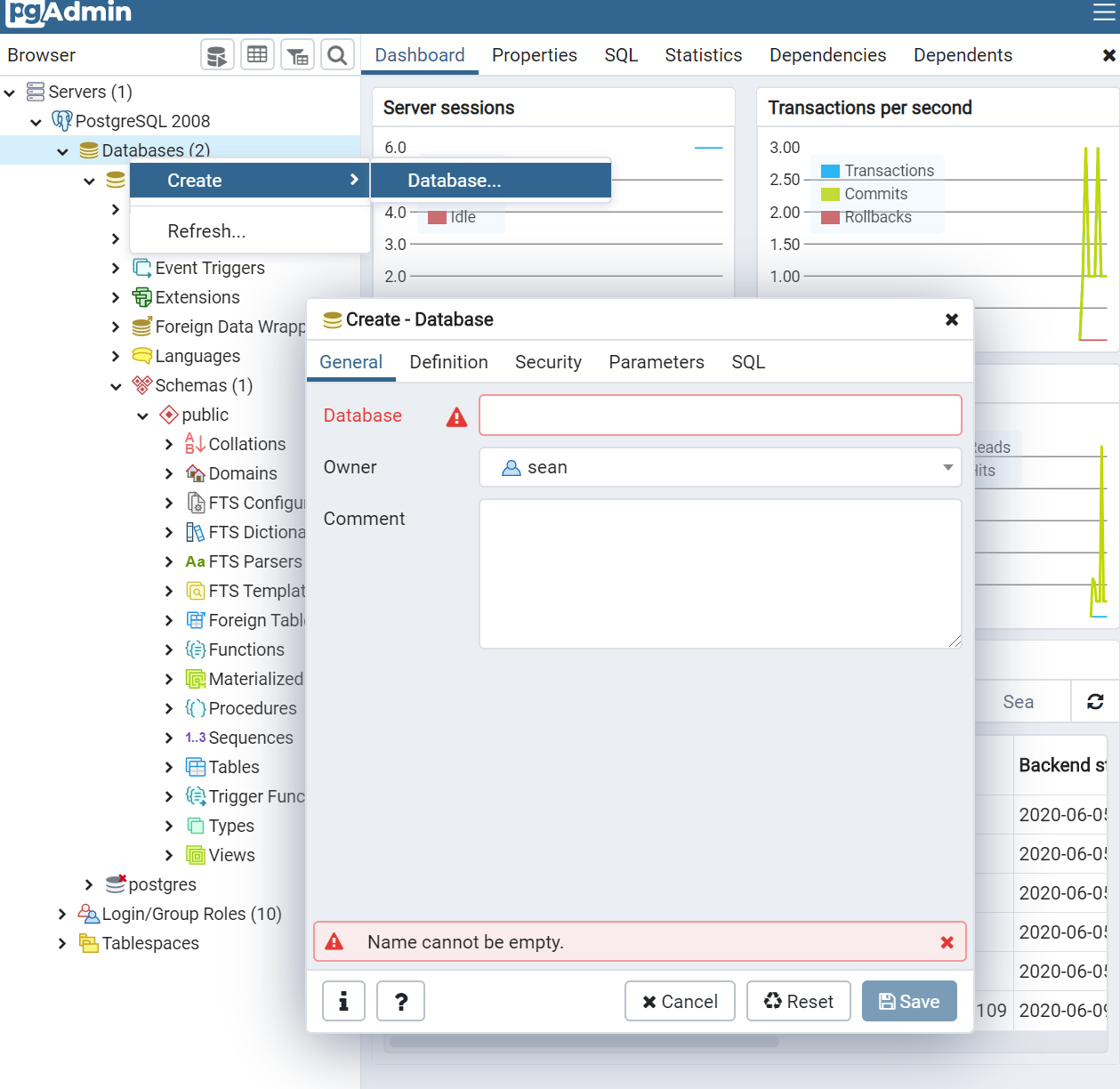 ☞ 같은 느낌으로 Databases 아이콘 클릭 후 우클릭 해주면, 'Create -> Database' 가 있는데