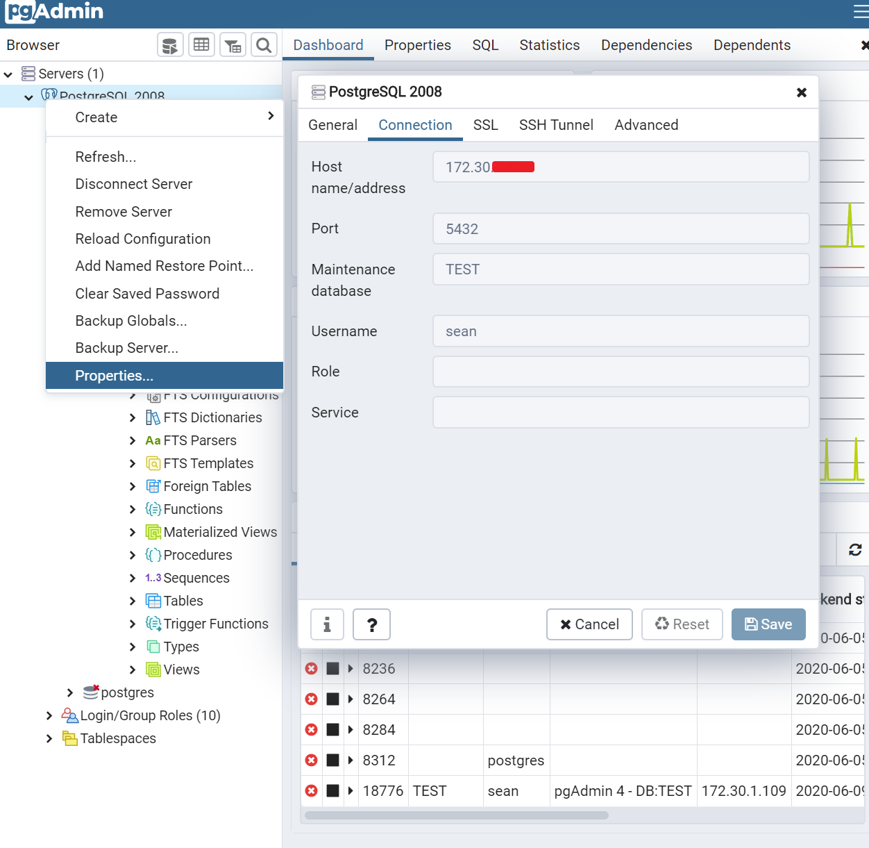 ☞ 'Servers' 밑에 있는 코끼리 아이콘을 우클릭 한뒤 'Properties'를 클릭합니다.