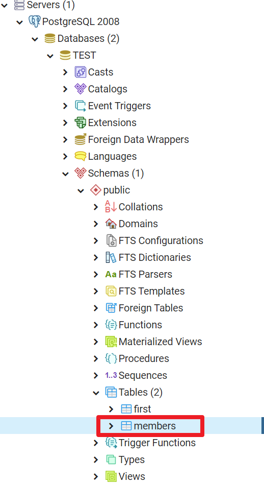 members 테이블이 만들어진것을 확인 할 수 있습니다.