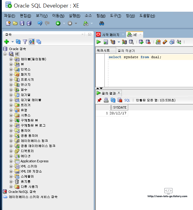- sysdate가 잘 나오는걸로 정상적으로 작동되는걸 알 수 있습니다.