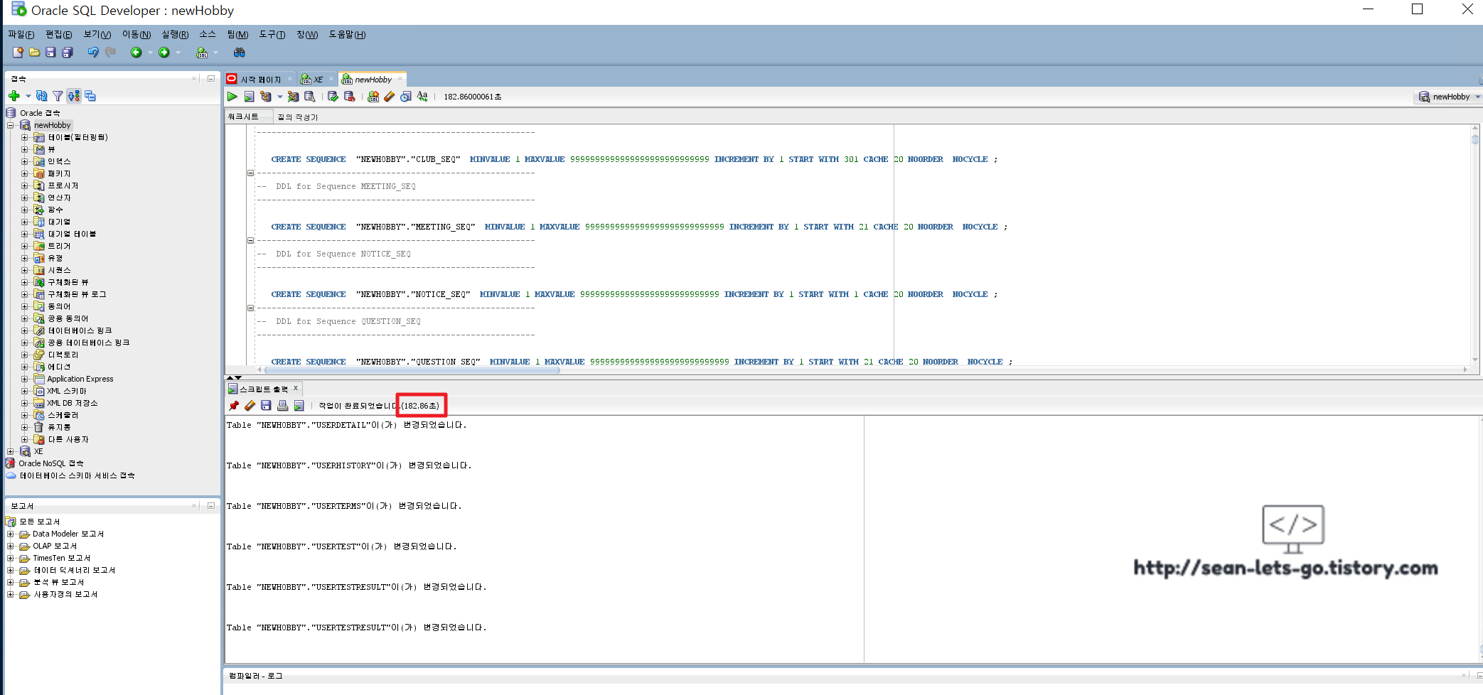 - 위에서 익스포트한 익스포트.sql을 윈도우 서버에 복붙 or 파일열기 등을 해서 스크립트 실행해줍니다.