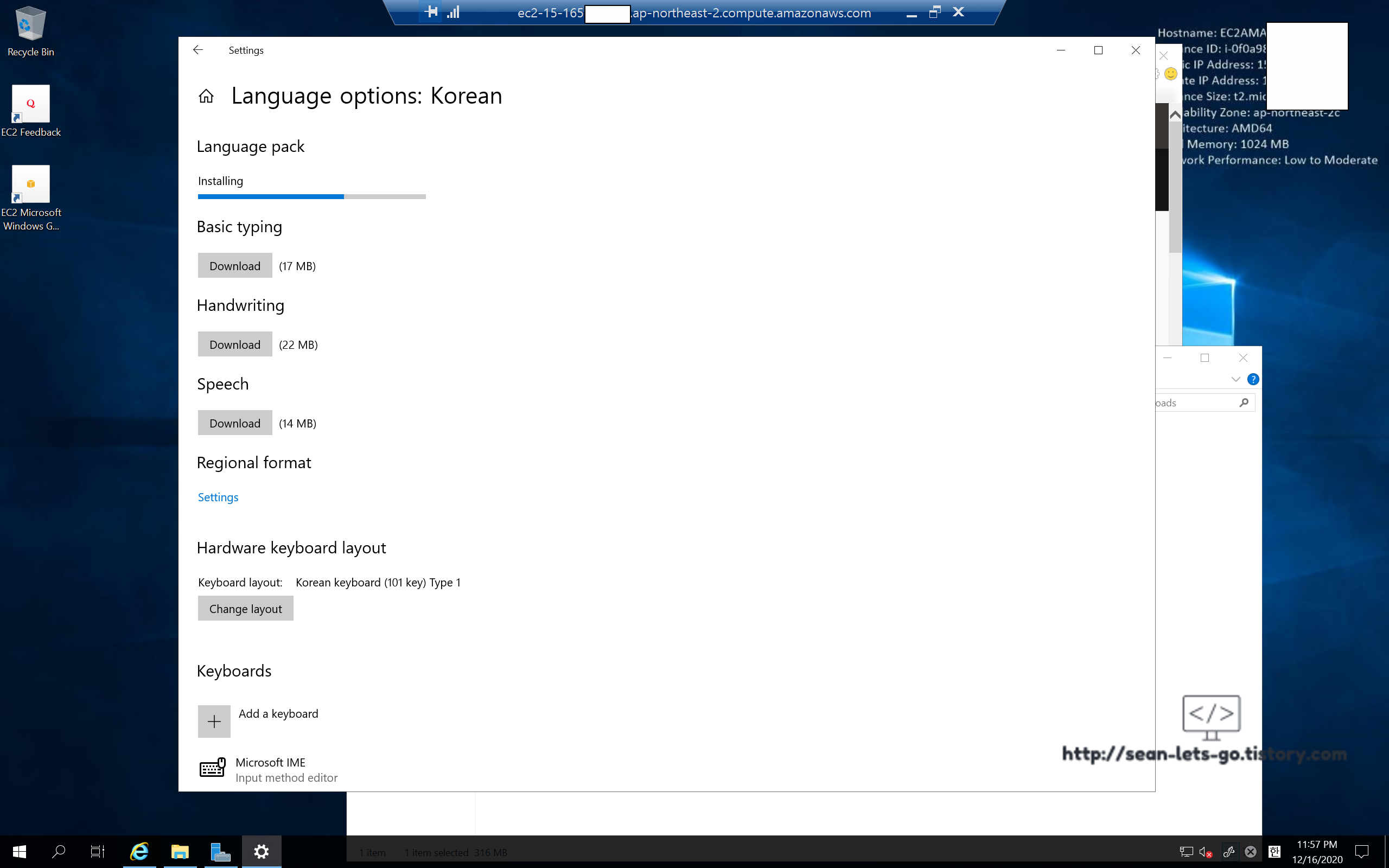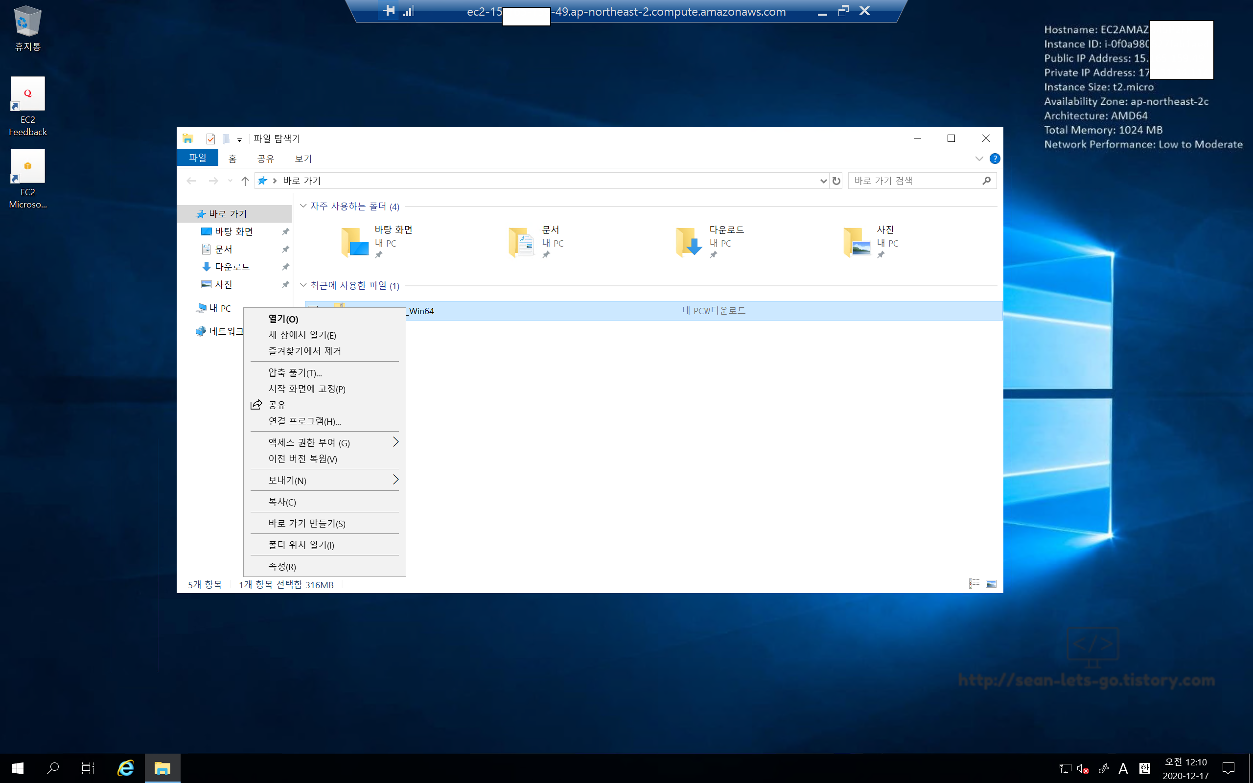 - EC2 윈도우에서는 보안? 문제로 다운로드 창이 안떠서, '로컬'에서 다운 받아서 복붙했습니다(로컬과 EC2 윈도우의 클립보드가 공유 되는것 같습니다. 신기하네요 :) )