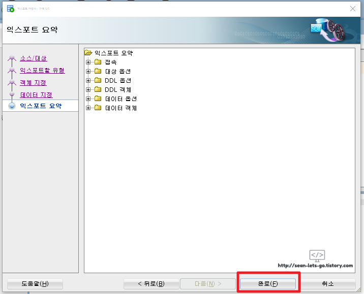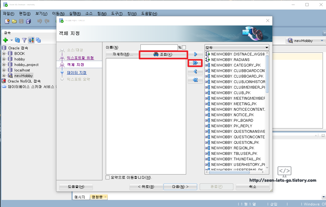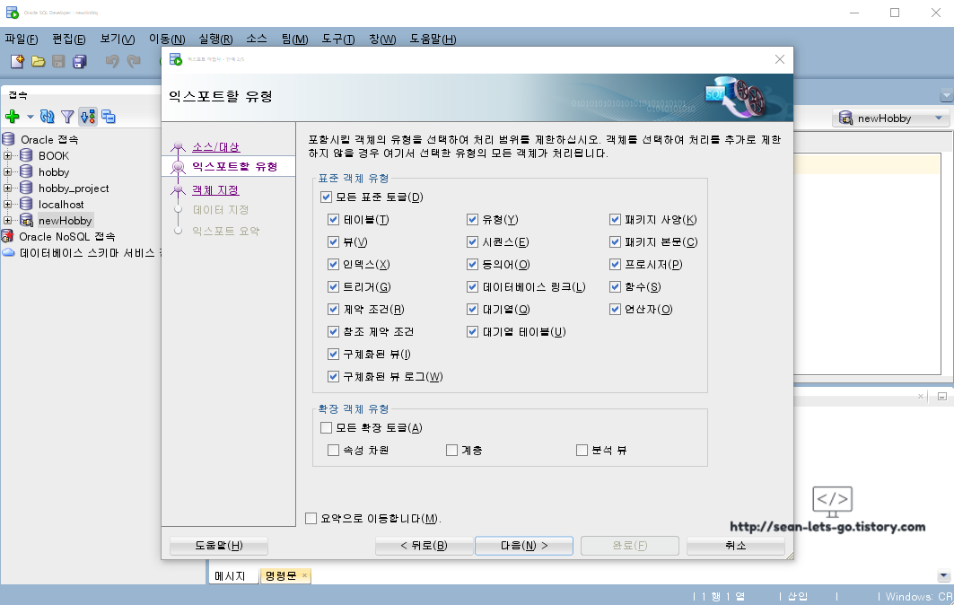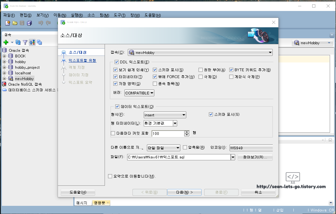 - SQL DEBELOPER에서 → 도구 → 데이터베이스 익스포트 → 익스포트.sql 실행