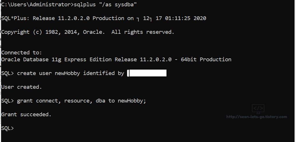 - SQL PLUS에서 사용자 만들고, 권한 주기 → 익스포트.sql 스크립트 실행