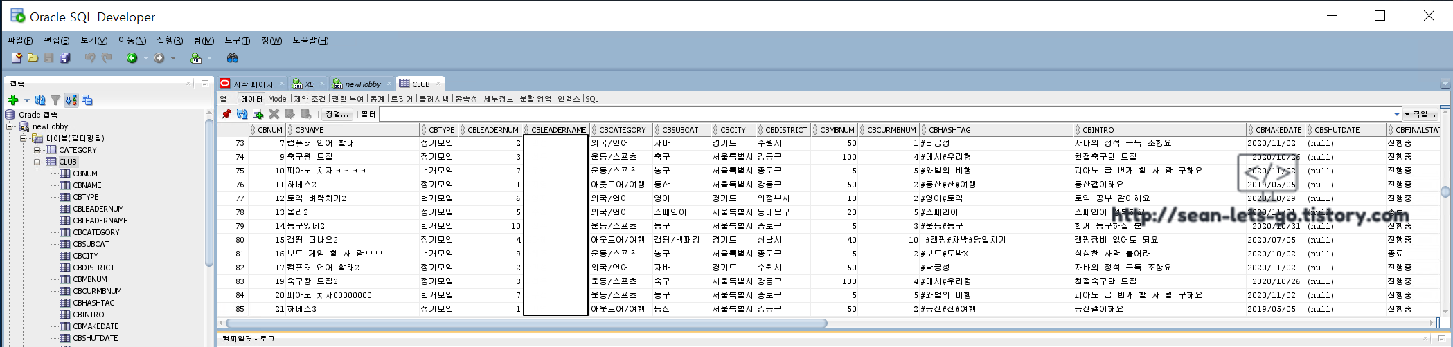 (제것은 local에서 본것 처럼 newHobby입니다)