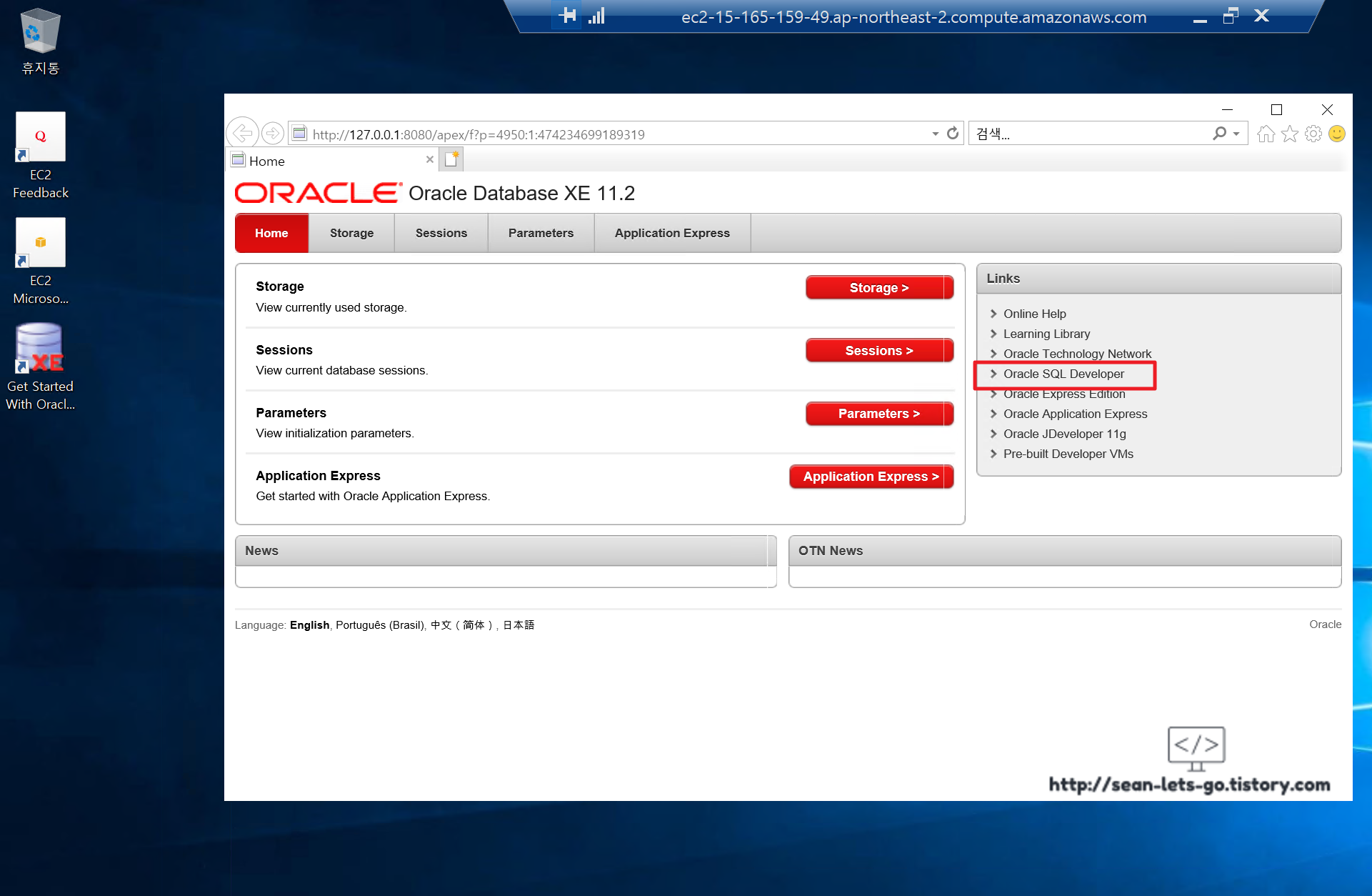 2. AWS EC2 WINDOW에 DB + SQL DEVELOPER 설치 및 DB EXPORT & IMPORT