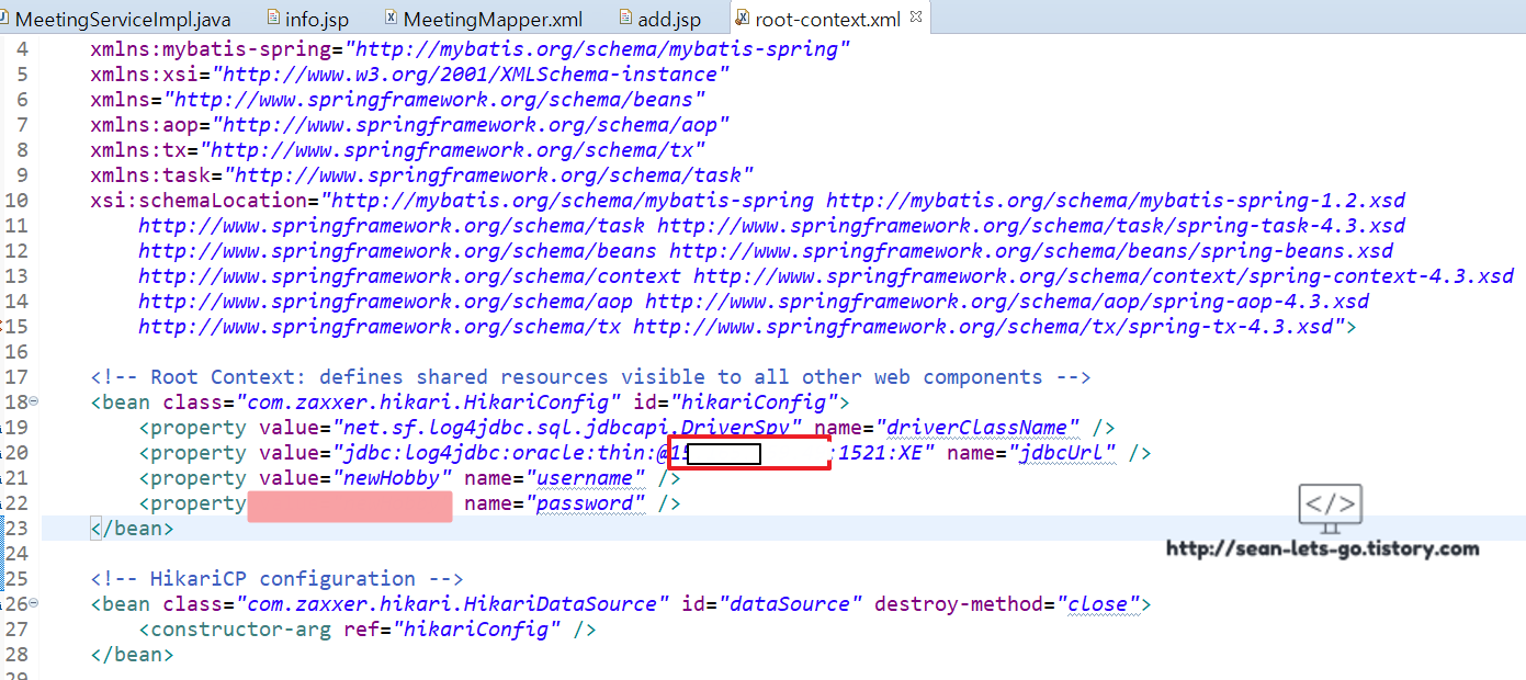 - STS(스프링) 상에서는 원래 20번째 줄이 'localhost'라고 되어 있을 텐데 EC2 윈도우의 Public IP Address로 바꿔줍니다.
