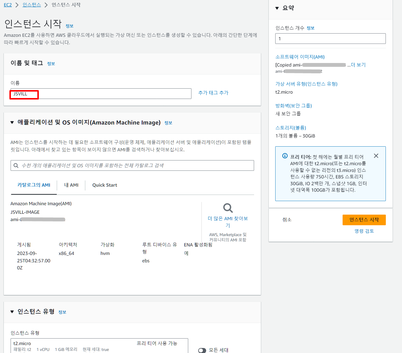 새로운 계정으로 복사한 AMI를 통해 인스턴스를 실행해보려고 한다.