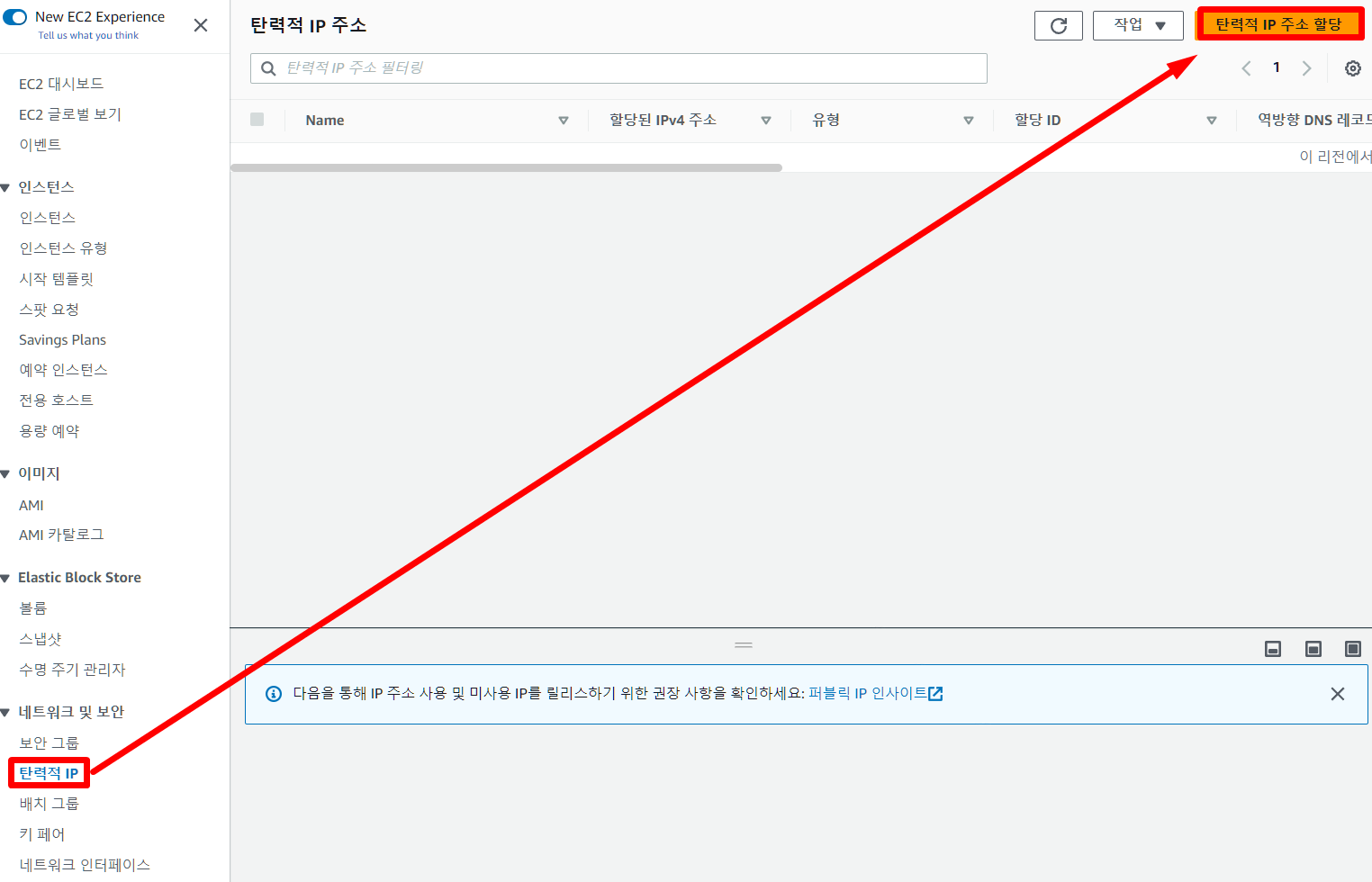 5. 고정 IP(탄력적 IP = Elastic IP) 설정